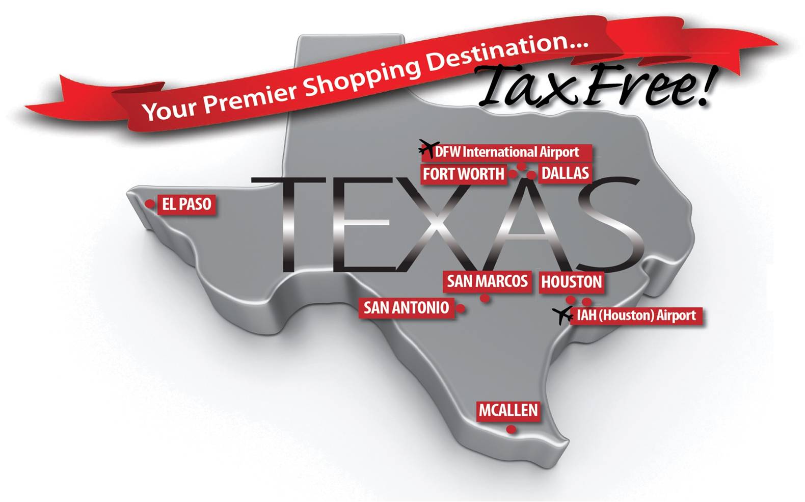 •  TaxFree Shopping em Texas proporciona o estado com uma advantagem mundial em marketing. Por exemplo: um aministrador principal de vendas em California disse, “Nós não podemos competir com Texas e Shopping por causa do serviço de vender sem impostos.”