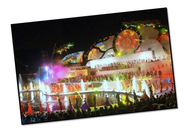A parte central é organizada através de um roteiro artístico e da participação de centenas de bailarinos e atores em um palco de importantes dimensões. Desta forma, as expressões artísticas e os produtos desta terra são combinados em uma festa para uma multidão com uma marca local. No domingo, todo o espetáculo é repetido, adicionando números artísticos com intérpretes de grande renome nacionais e uma grande exibição de fogos de artifício.